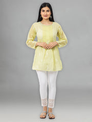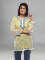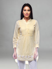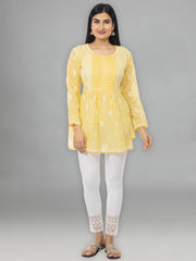 Seva Chikan Hand Embroidered Yellow Cotton Lucknowi Chikankari Short Top-SCL0179