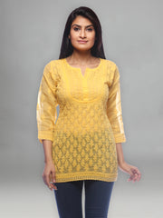Seva Chikan Hand Embroidered Yellow Cotton Lucknowi Chikankari Short Top-SCL2043