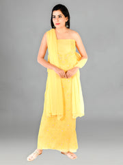 Seva Chikan Hand Embroidered Yellow Cotton Lucknowi Chikankari Unstitched Suit Piece-SCL13109
