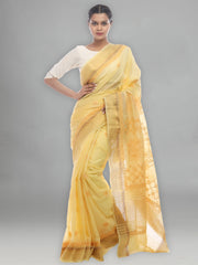 Seva Chikan Hand Embroidered Yellow Cotton Lucknowi Saree-SCL2324