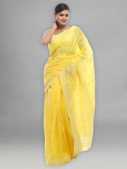 Seva Chikan Hand Embroidered Yellow Cotton Lucknowi Saree-SCL6007