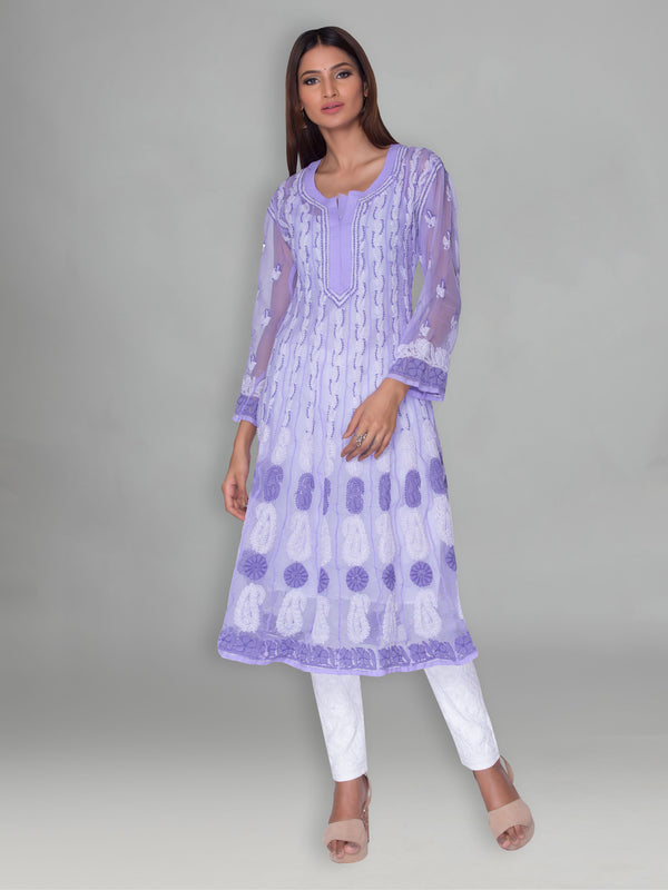 Seva Chikan Hand Embroidered Purple Faux Georgette Lucknowi Chikankari Anarkali Kurta-SCL0960