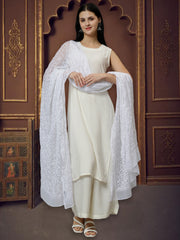 Seva Chikan Chiffon Dupatta With Mukaish Work