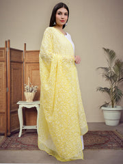 Seva Chikan Hand Embroidered Lucknowi Chikankari Yellow Georgette Tepchi Work Dupatta-SCL12015