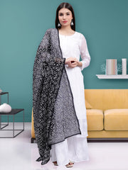 Seva Chikan Hand Embroidered Lucknowi Chikankari Black Georgette Tepchi Work Dupatta-SCL12019