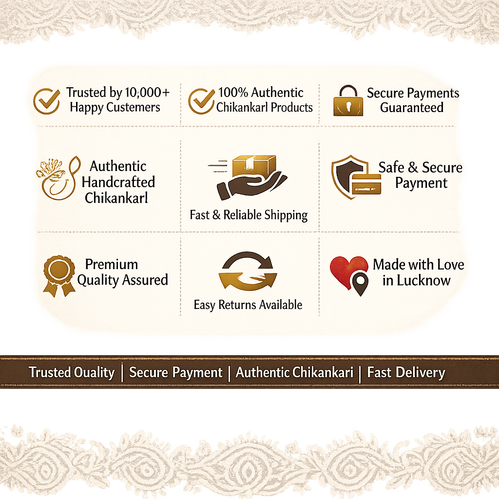 Disclaimer: There may be some minor dissimilarities in crafting and embroidery than showcase image. Since it is handcrafted product and these minor differences are natural when the crafting procedure has human involvement. However, these crafting changes are beautiful likewise show uniqueness.
