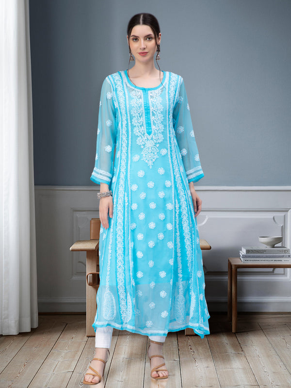 Seva Chikan Hand Embroidered Georgette Lucknowi Chikankari Anarkali Kurta