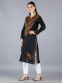 Delineation: Purchase this elegant and comfortable black chikan kurti online from Seva, is ideal for any fashionista. It has multi coloured rich and attractive chikan embroidery. Buy this classic kurti for any occasion, any festival and any party celebrations.