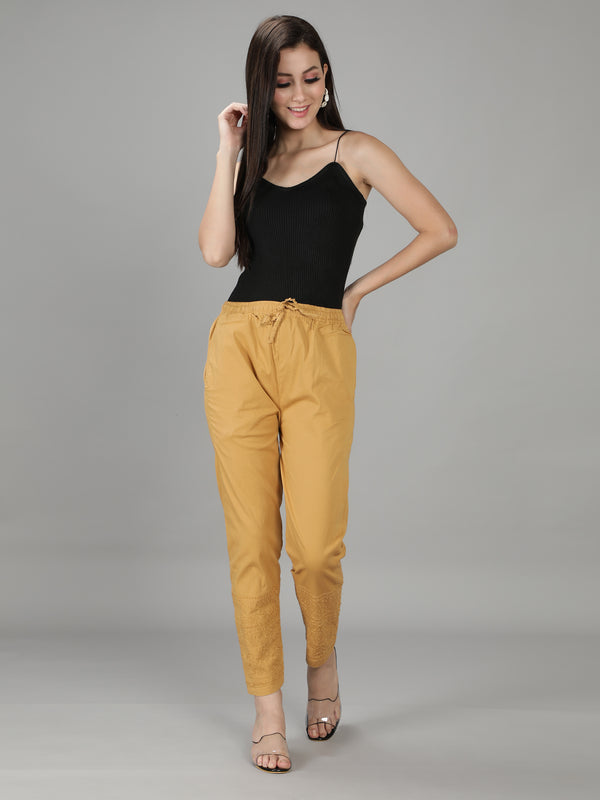 Delineation: Purchase this elegant and comfortable Fawn Chikan Palazzo online from Seva, is ideal for any fashionista. It has fawn-coloured rich and attractive chikan embroidery. Fabric of the Palazzo offer a relaxed silhouette and comfort to the wearer. Buy this classic lower for any occasion, festival, party celebrations. Pair it with any contrasting color kurta.