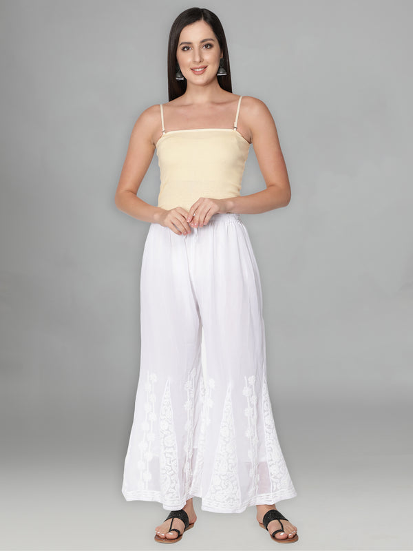 Seva Chikan Hand Embroidered White Georgette Lucknawi Chikankari Palazzo-SCL11010
