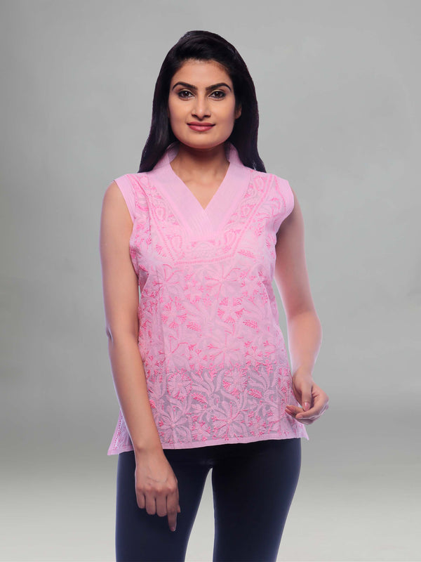 Delineation: Purchase this elegant and comfortable Pink Chikan Top online from Seva, is ideal for any fashionista. It has Pink-colored rich and attractive Chikan embroidery. Buy this classic short top for any occasion, any festival and any party celebrations.