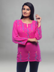 Seva Chikan Hand Embroidered Pink Georgette Lucknowi Chikankari Short Top-SCL0148