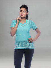 Seva Chikan Hand Embroidered Turquoise Georgette Lucknowi Chikankari Short Top- SCL0161