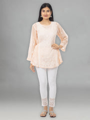 Seva Chikan Hand Embroidered Peach Cotton Lucknowi Chikankari Short Top-SCL2022