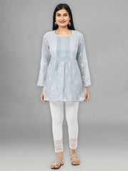 Seva Chikan Hand Embroidered Grey Cotton Lucknowi Chikankari Short Top-SCL2015