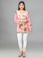 Seva Chikan Hand Embroidered Pink Cotton Lucknowi Chikankari Short Top-SCL2046