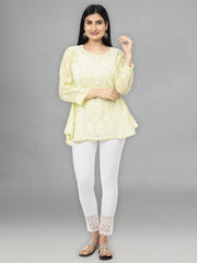 Seva Chikan Hand Embroidered Lemon Cotton Lucknowi Chikankari Short Top-SCL2044