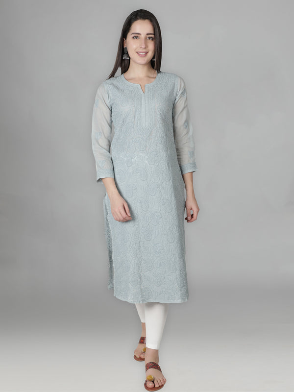 Delineation: Purchase this elegant and comfortable chikan Kurti online from Seva, is ideal for any fashionista. It has coloured rich and attractive chikan embroidery. Buy this classic kurti for any occasion, any festival, party celebrations.