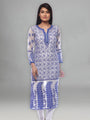 Delineation: Purchase this elegant and comfortable white chikan Kurti online from Seva, is ideal for any fashionista. It has blue-coloured rich and attractive chikan embroidery. Buy this classic kurti for any occasion, any festival, party celebrations.