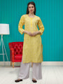 Delineation: Purchase this elegant and comfortable yellow Chikan kurta online from Seva, is ideal for any fashionista. It has White coloured rich and attractive Chikan embroidery. Buy this classic kurta for any occasion, any festival and any party celebrations.