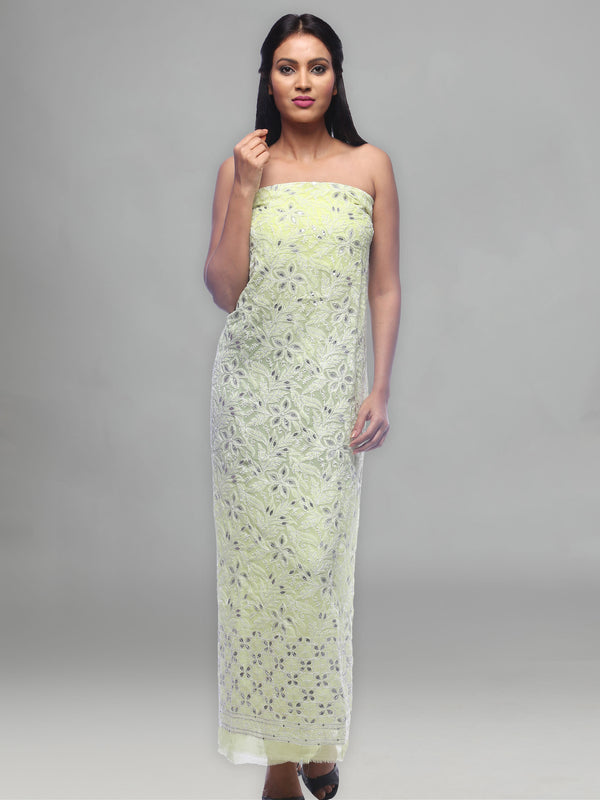 Seva Chikan Hand Embroidered Lemon Georgette Lucknowi Chikan Unstitched Kurti Piece-SCL0117