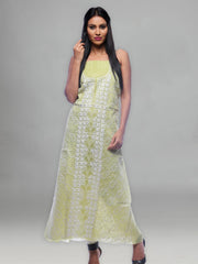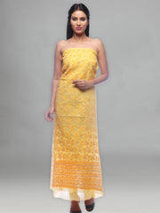 Seva Chikan Hand Embroidered Lemon Cotton Lucknowi Chikan Unstitched Kurta Piece-SCL0078