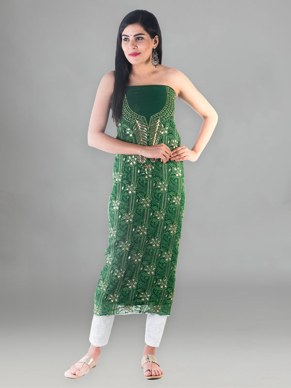 Seva Chikan Hand Embroidered Dark Green Georgette Lucknowi Chikankari Unstitched Suit Piece-SCL1610