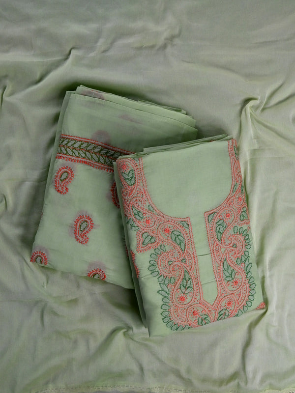 Seva Chikan Hand Embroidered Green Cotton Lucknowi Chikankari Unstitched Suit Piece-SCL13105