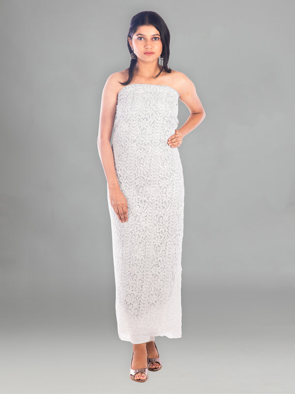 Seva Chikan Hand Embroidered Grey Georgette Lucknowi Chikan Unstitched Suit Piece-SCL1712