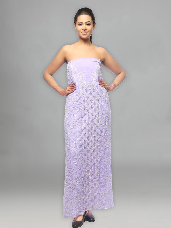 Seva Chikan Hand Embroidered Lavender Georgette Lucknowi Chikankari Unstitched Suit Piece With Mukaish/Muqaish Work-SCL0562