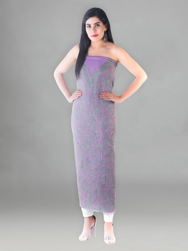 Seva Chikan Hand Embroidered Light Purple Georgette Lucknowi Chikankari Unstitched Suit Piece-SCL1601