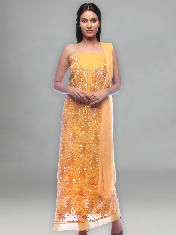 Seva Chikan Hand Embroidered Mustard Cotton Lucknowi Chikankari Unstitched Suit Piece -SCL0014