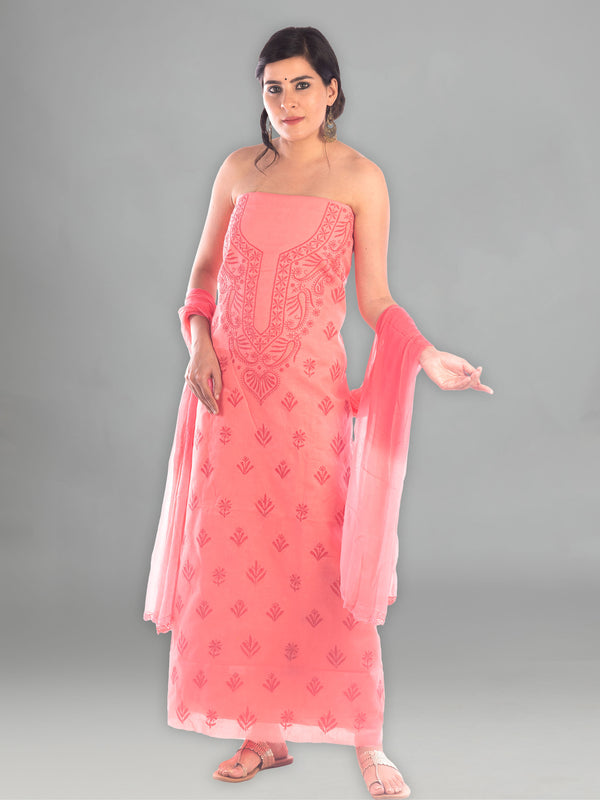Seva Chikan Hand Embroidered Cotton Lucknowi Chikankari Unstitched Suit Piece