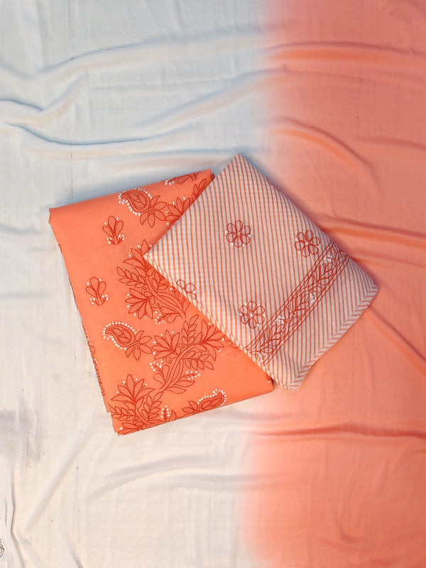 Seva Chikan Hand Embroidered Peach Terivoil Cotton Lucknowi Chikankari Unstitched Suit Piece-SCL13005