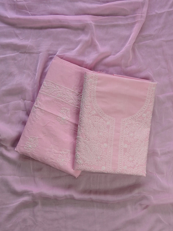 Seva Chikan Hand Embroidered Pink Cotton Lucknowi Chikankari Unstitched Suit Piece-SCL13060