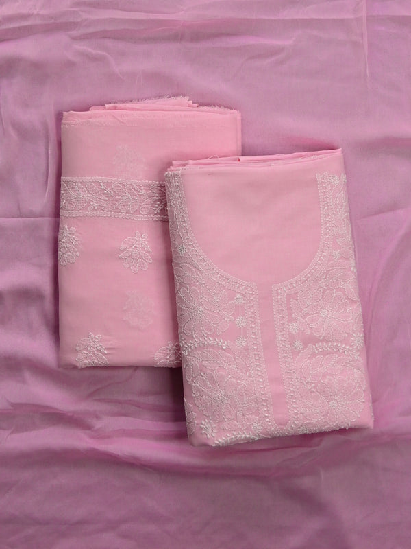Seva Chikan Hand Embroidered Pink Cotton Lucknowi Chikankari Unstitched Suit Piece-SCL13077
