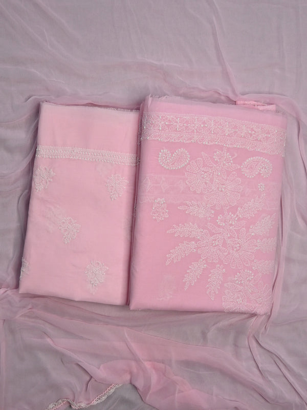 Seva Chikan Hand Embroidered Pink Terivoil Cotton Lucknowi Chikankari Unstitched Suit Piece-SCL13011