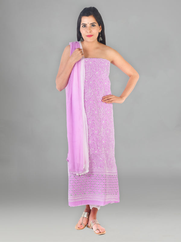 Seva Chikan Hand Embroidered Purple Cotton Lucknowi Chikankari Unstitched Suit Piece-SCL1680