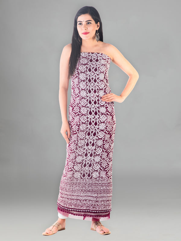 Seva Chikan Hand Embroidered Purple Georgette Lucknowi Chikan Unstitched Suit Piece-SCL1596