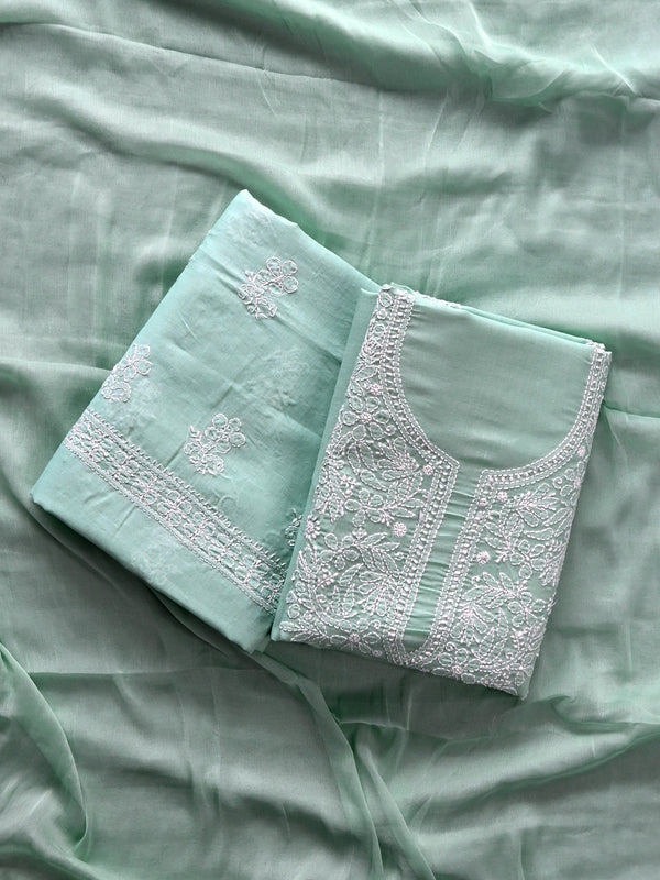 Seva Chikan Hand Embroidered Sage Green Cotton Lucknowi Chikankari Unstitched Suit Piece-SCL13066