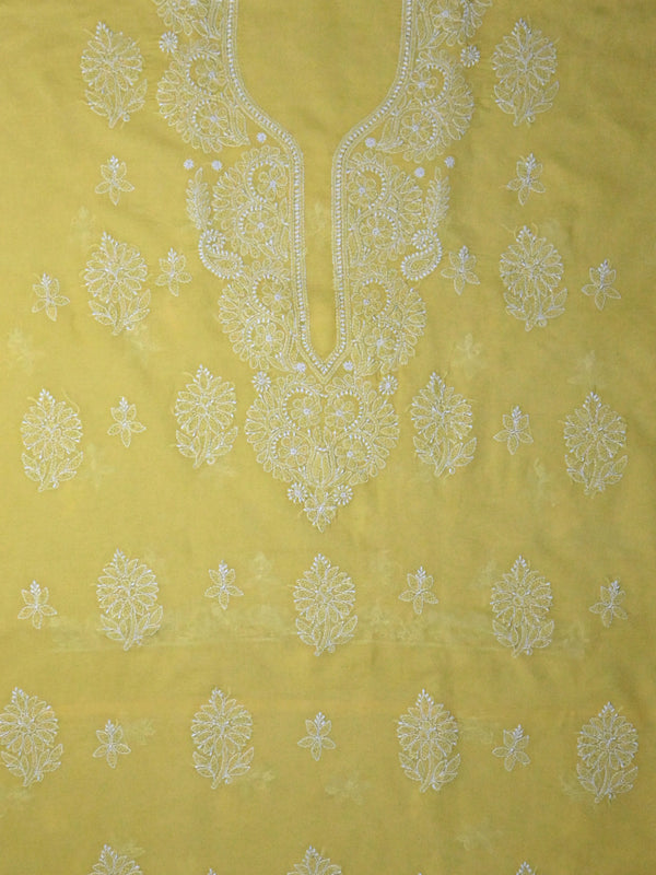 Seva Chikan Hand Embroidered Yellow Terivoil Cotton Lucknowi Chikankari Unstitched Suit Piece-SCL13032