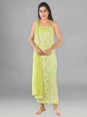 Seva Chikan Hand Embroidered Light Green Cotton Lucknowi Chikankari Unstitched Suit Piece-SCL1647