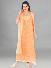 Seva Chikan Hand Embroidered Orange Cotton Lucknowi Chikankari Unstitched Suit Piece-SCL1685