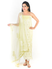 Seva Chikan Hand Embroidered Lemon Cotton Lucknowi Chikankari Unstitched Suit Piece-SCL1653