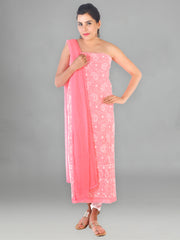 Seva Chikan Hand Embroidered Pink Georgette Lucknowi Chikankari Unstitched Suit Piece-SCL1711