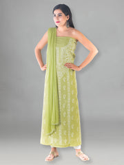 Seva Chikan Hand Embroidered Light Green Cotton Lucknowi Chikan Unstitched Suit Piece-SCL1494