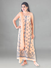Seva Chikan Hand Embroidered Peach Cotton Lucknowi Chikan Unstitched Suit Piece-SCL1507