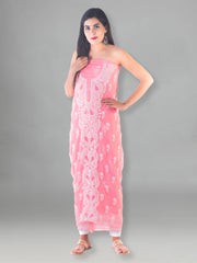Seva Chikan Hand Embroidered Pink Cotton Lucknowi Chikan Unstitched Suit Piece-SCL1508
