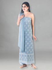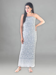 Seva Chikan Hand Embroidered Grey Cotton Lucknowi Chikan Unstitched Suit Piece-SCL1489