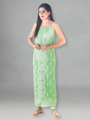 Seva Chikan Hand Embroidered Light Green Cotton Lucknowi Chikan Unstitched Suit Piece-SCL1490